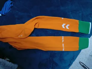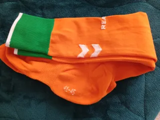Medias de fútbol del Real Betis. - Color naranja con detalles verdes y blancos. - Talla 41-45. - Diseño con logo y flechas.