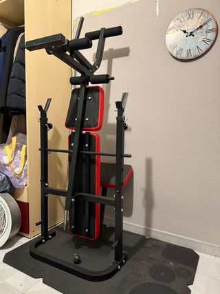 ISE Banco de musculación multifuncional plegable. Es un equipo versátil para entrenar en casa. En perfecto estado. Comprado en Amazon, dejo el link para más detalles como medidas y funcionalidades (buscar como “ISE Banco de musculación multifuncional”): amzn.eu/d/dLy0PUT