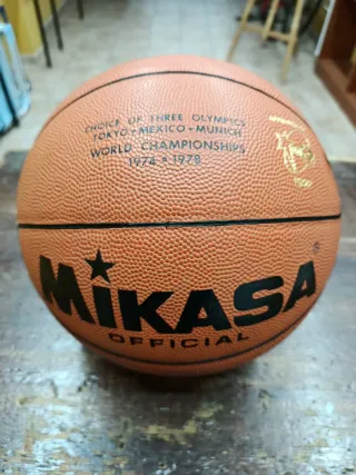 Balón de baloncesto Mikasa BL100, elección oficial de tres Juegos Olímpicos y Campeonatos Mundiales serie limitada. - Nuevo sin uso para coleccionistas y aficionados. - Diseño clásico. - Superficie texturizada de cuero para un mejor agarre. - Inscripción Mikasa Official y Choice of Three Olympics, Tokyo-Mexico-Munich, World Championships 1974-1978.