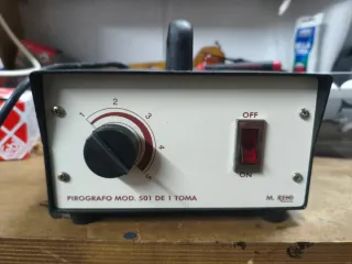 Pirografo modelo 501 de la marca M. Reig. - Control de temperatura con dial. - Interruptor ON/OFF. Buen estado, con un par de bocas y unos fusibles nuevos.