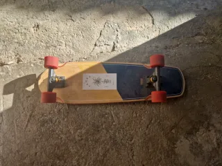 Skate de madera con un diseño moderno y ruedas rojas. - Tabla de madera con acabado natural. - Superficie antideslizante negra. - Ruedas de color rojo.