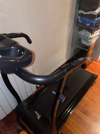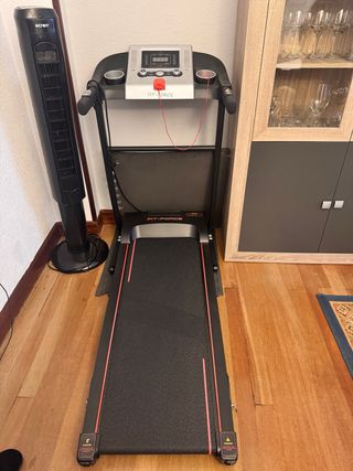 Cinta de correr Bodytone modelo DT16. - Prácticamente nueva. La usó mi mujer al poco de comprarla y ahora la utiliza 2 veces al mes o menos, conserva el plástico de la pantalla aún. - 2,5 cv hasta 16 km/h. 12 programas y 18 posiciones. - Sensores de frecuencia cardíaca - Peso máximo: 120kg - 2 porta-botellas, conexión MP3 y altavoces integrados High Definition compatible con la APP HK-Treadmill - Se entrega bote para lubricar la cinta. - Se pliega con facilidad y ocupa menos espacio. - Superficie de carrera: 126x42 cm - Se compró en Mediamarkt en el 2022, se enseña factura si se quiere - Pesa unos 70kg Cualquier duda preguntar