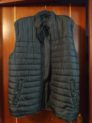 Chaleco plumífero con cierre de cremallera. - Diseño acolchado. - Dos bolsillos frontales con cierre de botón a presión. - Cuello alto. - Prácticamente nuevo