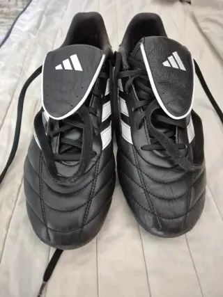 Botas de fútbol Adidas Copa Gloro 2 en color negro y blanco. En muy bien estado. Las vendo porque me he operado de la.rodilla y he optado por las mismas pero en versión multitacos. Son ina gozada. - Diseño clásico y cómodo. - Logo de Adidas en los laterales. - Cierre con cordones y lengüeta con goma