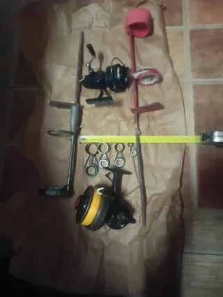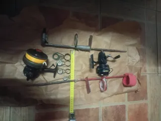 Conjunto de material de pesca que incluye picas, carretes y arandelas. - Dos carretes de pesca. Uno Sagarra super sin manivela otro Mitchell 410 - Juego de arandelas para cañas de pescar. - Soporte picas para caña de pescar. Se vende como estropeado o que lo an dado todo pero los carretes funcionan.