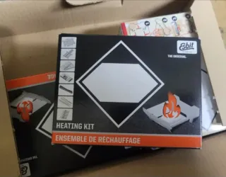 Hornillo plegable de emergencia, Esbit. Nuevo, en caja original, sin usar. Contiene hornillo plegable reutilizable, cerillas, pastillas de encendido, pastillas purificación agua, palillos, bolsita de basura y pequeña asa plegable para sujetar latas etc, sin quemarte. Proviene de ración de emergencia militar. Ligero, muy útil como hornillo de emergencia en senderismo, treking, acampada, viaje, bushcraft, survival, Etc.
