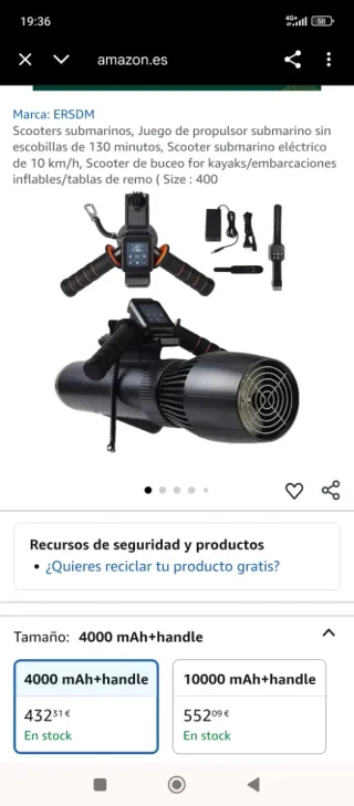 Scooter submarino eléctrico ERSDM con propulsor sin escobillas. - Autonomía de 130 minutos. - Velocidad de 10 km/h. - Ideal para kayaks, embarcaciones inflables y tablas de remo.