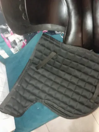 Silla de montar de cuero negro. - Diseño acolchado. - Hebillas metálicas.