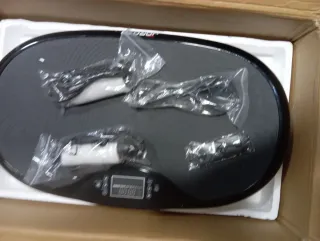 Plataforma vibratoria JOROTO en color negro. Diseñada para el ejercicio en casa. - Superficie de apoyo ovalada. - Pantalla digital integrada. - Patrón texturizado en la superficie.