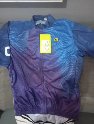 Camisetas de ciclismo con un diseño moderno y llamativo. _Precio por las 2 - Mangas cortas - Cremallera completa. - Degradado de color azul a morado. - Logo de la marca Ale en el pecho.