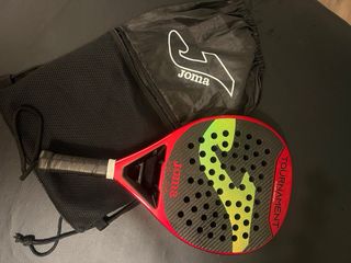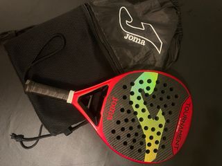 Pala de pádel Joma Tournament Player Edition. - Pala de pádel de color rojo. - Usara una semana solo un rasguño de pintura - Diseño con logo Joma en degradado. - Incluye funda de tela negra.