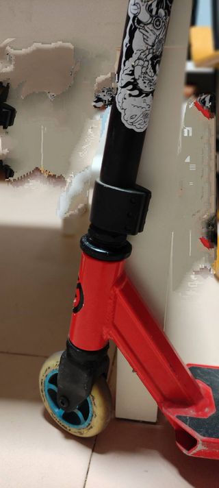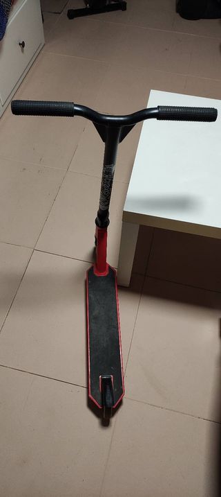 Patinete diseñado para la práctica de freestyle. ¡Oferta para Reyes! Patinete Oxelo MF One en muy buen estado ¡a solo 20 euros! Diseñado para niños y niñas de 5 a 8 años que desean descubrir las primeras sensaciones en un patinete de freestyle. - Manillar negro con puños de goma. - Base de color negro con borde rojo. - Ruedas blancas.