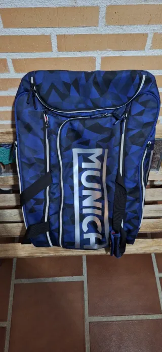 Paletero de la marca Munich con un diseño geométrico en tonos azules y negro y otro igual en verde y gris. Ideal para transportar tu equipación deportiva. - Diseño geométrico. - Color azul y negro. - Color verde y gris. - Logo de Munich en plateado.