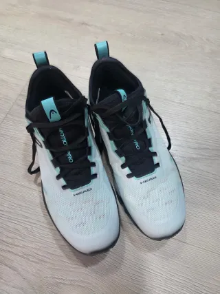Zapatillas deportivas HEAD Motion Pro en talla 40.5. Diseñadas para ofrecer comodidad y rendimiento. Usadas 2 veces. - Color blanco y turquesa. - Cierre con cordones negros. - Logo HEAD en la lengüeta y lateral.