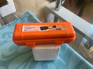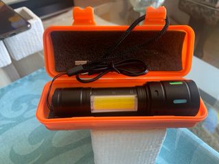 Linterna LED multifuncional en su estuche original. - Diseño compacto y portátil. - Estuche de color naranja brillante. - hasta 800 mts - recargable con porte USB incluido - 3 tipos de luz - lampara lateral, para leer o iluminar una estancia - zoom incorporado - pantalla con porcentaje de carga Nueva sin uso Precio en tienda 24,99