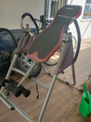 Tabla de inversión BH Zero, diseñada para el bienestar. - Tapizado en rojo y negro. - Asas de agarre negras. - Estructura metálica. - Reposapiés acolchados.