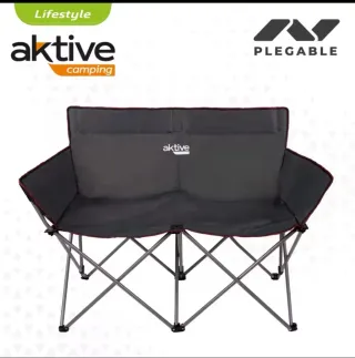 Sofá silla de camping Aktive para dos personas. Ideal para exteriores. - Estructura de acero. - Soporta hasta 110 kg por asiento. Sofá De Camping Plegable Para 2 Personas Aktive Acero Y Polietileno, 107x63x88 Cm, Máx. 220 Kg Nuevo a estrenar