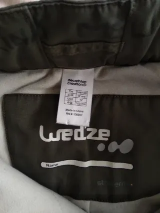 Pantalón de nieve en color gris-versdoso, ideal para practicar snowboard o esquí. -Marca Wed'ze -T.12 146/158 - Cremalleras en los bolsillos delanteros. - Detalle de logo en la pierna izquierda. - Parte inferior reforzada.