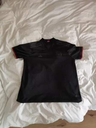Camiseta de la selección alemana de fútbol en color negro. - Talla L. - Diseño con detalles en las mangas y cuello. - Escudo de Alemania y logo de Adidas.