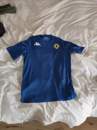 Camiseta oficial del Hércules Club de Fútbol en talla S. Ideal para los aficionados del equipo. - Color azul. - Logo del Hércules CF. - Logo de Kappa.