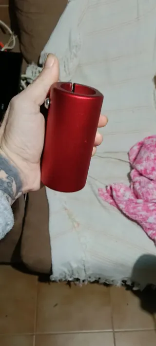 Se vende una pieza de despiece para patinete eléctrico Xiaomi. Es de color rojo y está fabricada en aluminio. - Material: Aluminio - Color: Rojo