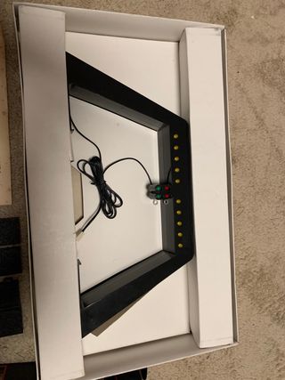 Incluye la torre luminosa de salida,en su caja. - Torre luminosa de salida. - Varias piezas de pista negras. - Dos barreras de pista (roja y amarilla). - Hoja de instrucciones. - Hoja de pegatinas con motivos de carreras y banderas.completa.Funciona correctamente probada