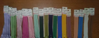 Lote de 20 cremalleras de 20cm y lote de 25 cremalleras de 16cm de las marcas Relámpago y Hogar. - Cremalleras de diferentes colores.