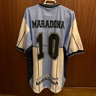 Camiseta conmemorativa de Diego Armando Maradona. - Diseño azul y blanco con el número 10. - Inscripción Homenaje a Diego Maradona en la parte inferior.