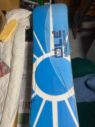 tabla de snowboard olé snowboards perfecta para iniciación. -cantos y encerado recien hechos. -tiene bastante uso pero todavia tiene para dar mucha guerra, la suela esta perfecta le faltaria raspar la cera y pulirla pero se daria ya hecho listo para usar.