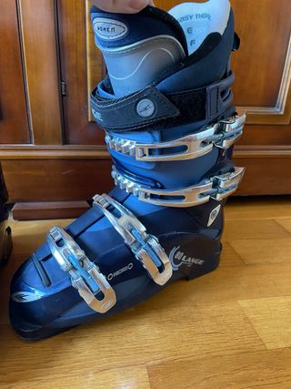 Botas de esquí mujer marca LANGE modelo 80 RRS. Tiene sistema Multi ADJ (El sistema de ajuste "Multi Adj" o de múltiples ajustes en las botas de esquí sirve principalmente para personalizar el calce (fit), la comodidad y la transferencia de energía del esquiador a los esquís, adaptándose a la forma única del pie y la pierna). El número es 24,5 lo que equivale a un 38,5