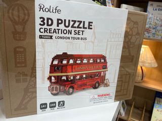 Maqueta 3D del icónico autobús turístico de Londres de la marca Rolife. - Modelo: London Tour Bus (TGM02). - Número de piezas: 245. - Edad recomendada: 14+ años. - No requiere pegamento ni herramientas.