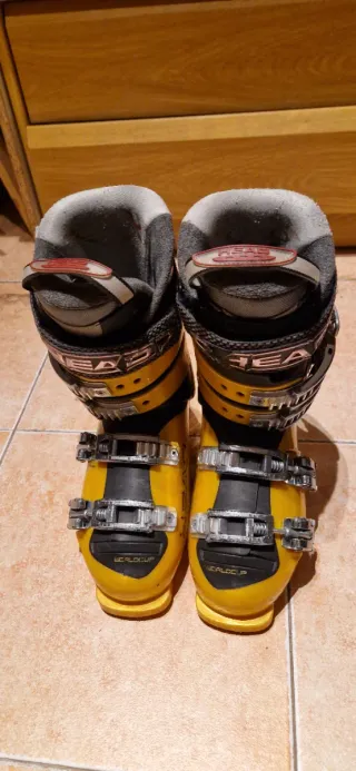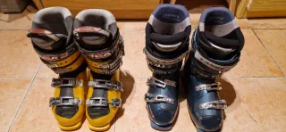 Botas de esquí para niño, talla 24.5. - Marca Lange. - Color azul y amarillo - 4 Cierres de hebilla. 20€ por par botas.