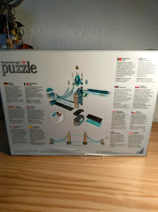 Puzzle 3D del icónico Tower Bridge de Londres de Ravensburger. Está nuevo, sin abrir, aún mantiene parte del precinto original, en Amazon está vendiéndose por 61€. Cualquier pregunta no dudes en deciremla - 216 piezas de plástico. - Tecnología EasyClick para un encaje perfecto sin pegamento. - Dimensiones: 117,4 cm x 46,2 pulgadas.