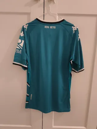 Camiseta de fútbol del Real Betis Balompié. - Diseño oficial Kappa. - Color verde. - Logo de Betway en el frontal. - Parche de LaLiga en la manga.