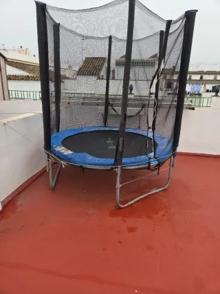 Cama elástica para disfrutar en el jardín o terraza. Cuenta con una red de seguridad para mayor protección. Esta montada el jueves se demonta por si alguien la quiere montasa. - Estructura metálica. - Superficie de salto azul. - Red de seguridad negra. Palabras clave: coche, inmobiliaria, juguetes, inmobiliaria, herramientas , led, bicicletas, móviles, tablet iphone, samsung , etc.. regalo, doy.......todas las categoria