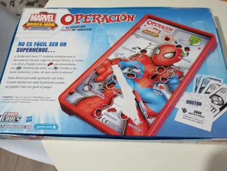Juego de mesa Operación Spider-Man de Playskool Heroes. ¡El divertido juego de habilidad! - Incluye piezas como Telaraña Rota y Pie Enmarañado. - Contiene elementos como Baba de Lagarto y Corazón de Héroe. - También incluye Mordisco de Araña Radiactiva y Rodilla de Trepamuros.