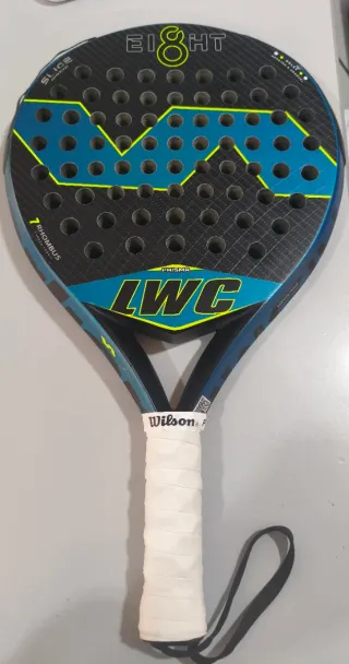 Pala de pádel Starvie modelo 9.1. Tiene un golpe en el borde con una pequeña raja. Se vende en estado según fotos