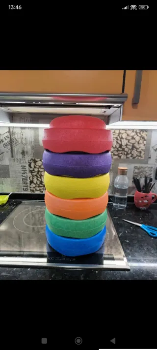 Set de stepping stones de colores para juegos o decoración. - Colores: rojo, morado, amarillo, naranja, verde y azul. - Material resistente.