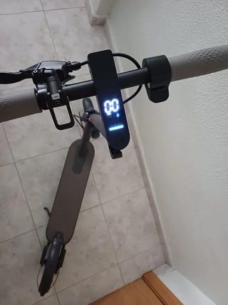 Patinete eléctrico Xiaomi modelo es-10S3P. Bien cuidado, la batería le dura muy poco - Manillar con pantalla digital. - Puños texturizados para mejor agarre. - Freno delantero. - Rueda trasera.