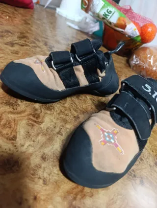 Pies de gato para escalada,. Cuentan con un diseño cómodo y seguro. Talla 37-38 - Cierre de velcro. - Suela de goma adherente. - Diseño con estampado.