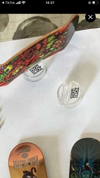Set de soportes transparentes para patinetes. - Marca: Tech Deck. - Diseño circular.