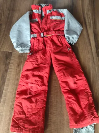 Mono de nieve para niño, ideal para disfrutar de la montaña y la nieve. - Color rojo y gris. - Cinturón ajustable. - Cremallera frontal.