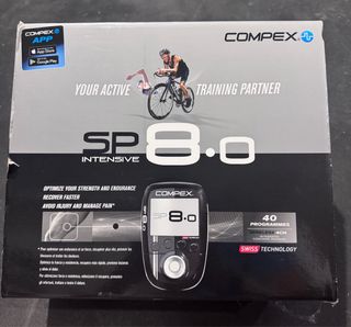 Electroestimulador Compex SP 8.0 Intensive, diseñado para optimizar tu rendimiento deportivo y recuperación. - Tecnología Swiss Technology. - 40 programas integrados. - Conexión inalámbrica (Wireless 4CH). - Pantalla digital. - Incluye app Compex. - Estado impecable. - Se entrega con juego de parches nuevos. - Se entrega con su caja original. y Todos los accesorios.