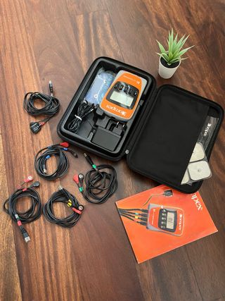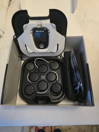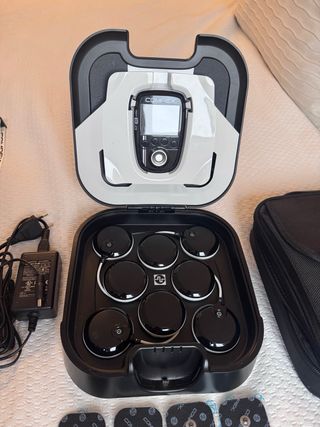 Electroestimulador en muy buen estado, diseñado para entrenamiento intensivo, recuperación muscular y alivio del dolor. Adecuado para deportistas exigentes Incluye: Unidad principal Módulos inalámbricos Electrodos Base de carga Cable de carga Estuche de transporte