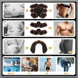 - Usa tecnología EMS, lo que significa que utiliza corriente biónica para simular la señal cerebral para dar órdenes musculares para hacer ejercicio. - Envía señales directamente a los músculos y promueve el movimiento muscular. - Control inalámbrico y diseño USB recargable. *Precio Amazon: 26,90 €*
