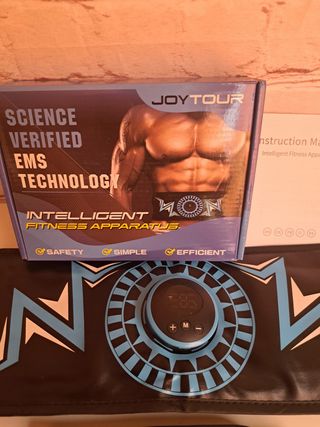 Electroestimulador muscular unisex a estrenar Conserva estuche original Marca, joy tour, para abdominales con correa de extension adicional tecnologia EMS recargable con dispositivo normal no incluido lote 24 etiqueta 5464