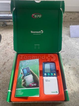 Electroestimulador Tesmed Para rehabilitar en casa lesiones músculo-esqueléticas, dolor, contracturas, fitness. Impecable en su caja original Con manual de instrucciones en alemán italiano inglés español portugués francés. Con esquemas de colocación de electrodos y programas recomendados Se regalan 3 pilas y 4 electrodos de 50x50 mm a estrenar