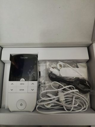 Electroestimulador Beurer EM 49 en perfecto estado con muy poco uso. Dispositivo TENS/EMS ideal para aliviar dolor muscular. Incluye doble canal, pantalla grande y más de 60 programas. Fácil de usar para fisioterapia en casa. incluye 2 electrodos nuevos. Entrega en mano en Madrid para probar. Precio 55€.