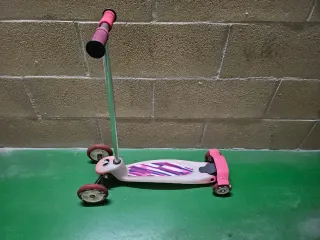 Patinete infantil de tres ruedas en color rosa, con detalles de diseño en rosa y blanco. - Manillar ajustable. - Ruedas de goma. - Plataforma antideslizante.