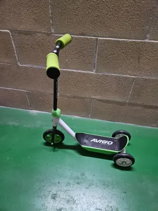 Patinete de tres ruedas con diseño llamativo en color verde y blanco. - Manillar ajustable. - Ruedas de buen tamaño para estabilidad. - Plataforma antideslizante.